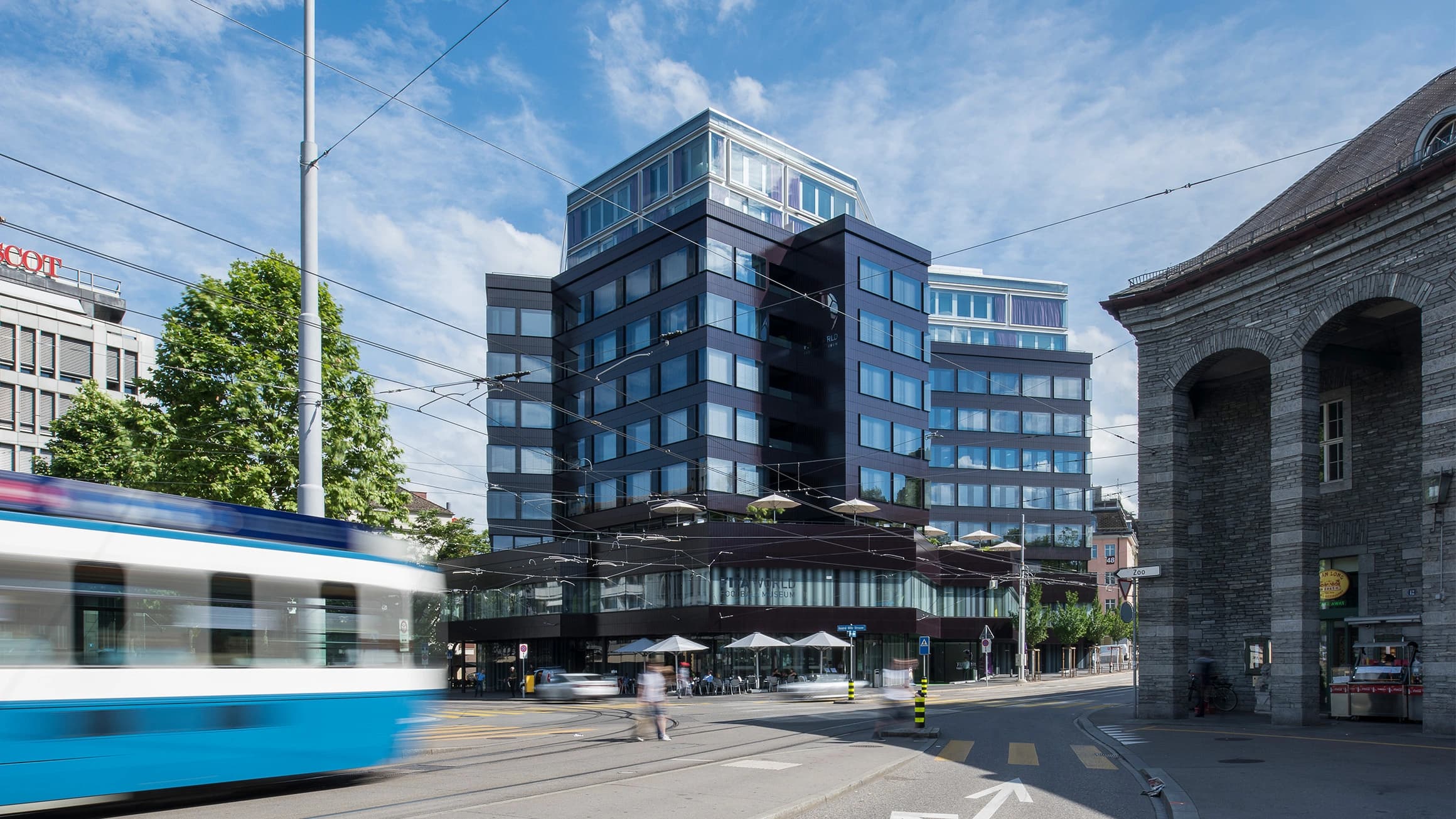 In der Hülle eines Hochhauses aus der Feder von Werner Stücheli von 1978 soll das neue FIFA World Football Museum entstehen. Neben dem Museum soll der Bau nach der Sanierung auch Platz bieten für Verkaufsflächen, Gastronomie-, Seminar- und Bürobereiche sowie 34 Wohnungen. HRS beweist mit einem ambitionierten Konzept, wie sich ein gelungenes Stück Siebzigerjahrearchitektur gekonnt ins Heute transportieren lässt.