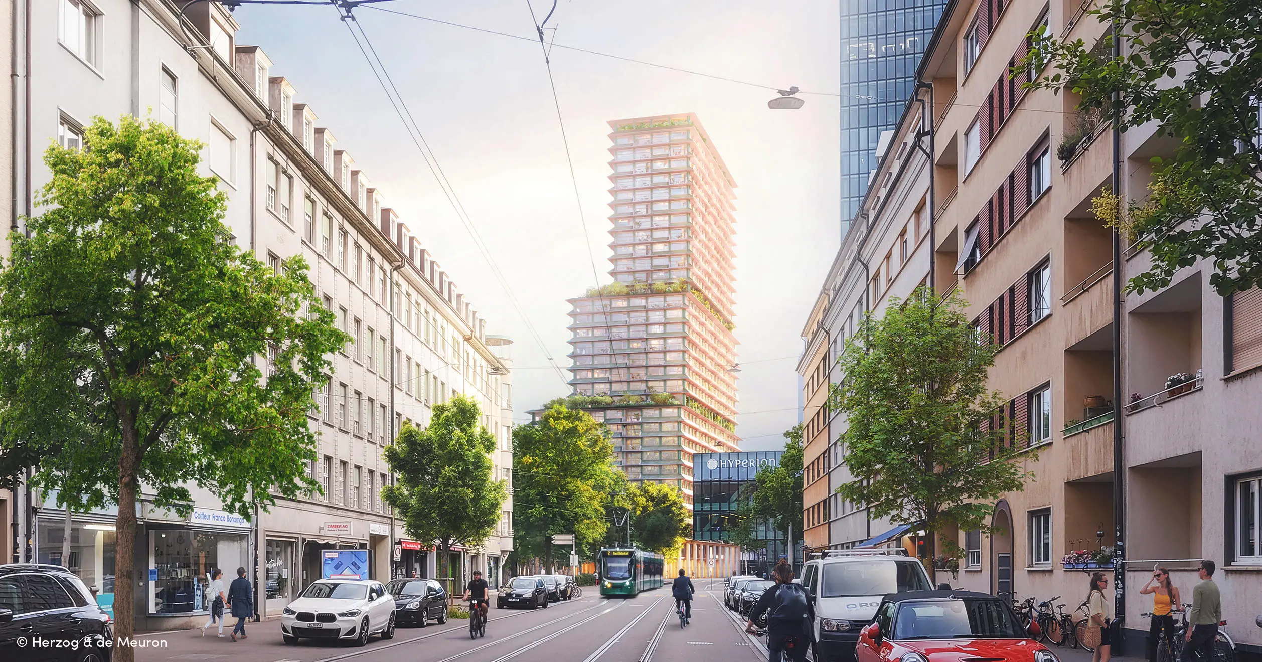 Das Parkhaus der Messe Basel bei der Rosentalanlage wird durch einen Neubau ersetzt: ein Hochhaus und einen Längsbau mit Wohn- und Gewerbenutzungen sowie unterirdischem Parkhaus. Dabei entsteht Wohnraum für ein breites Zielpublikum mit vielfältigem Wohnungsmix. Um eine herausragende architektonische Exellenz zu erreichen, führt HRS als Entwicklerin einen anonymisierten Architektenwettbewerb durch, aus dem Herzog & DeMeuron einstimmig als Sieger hervorgehen.